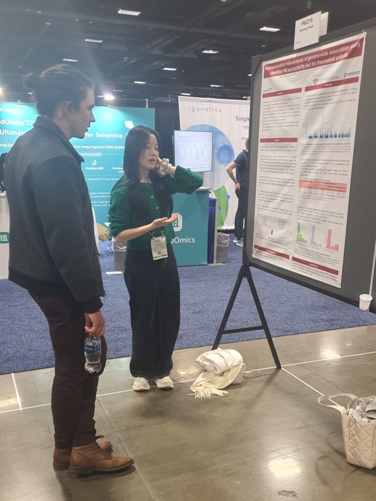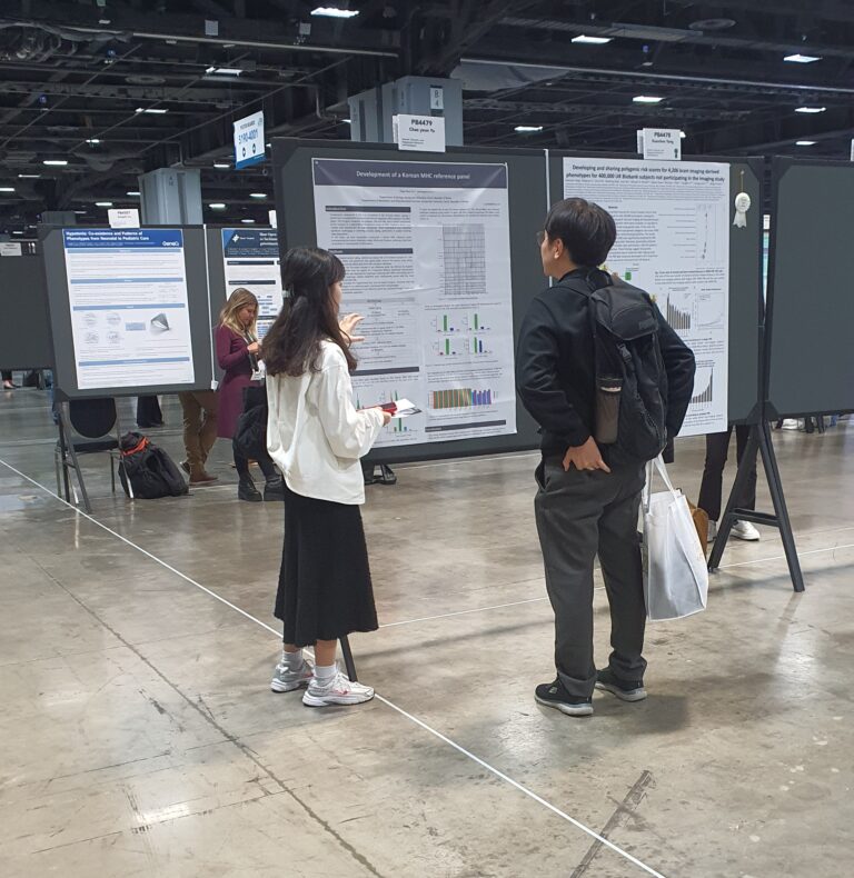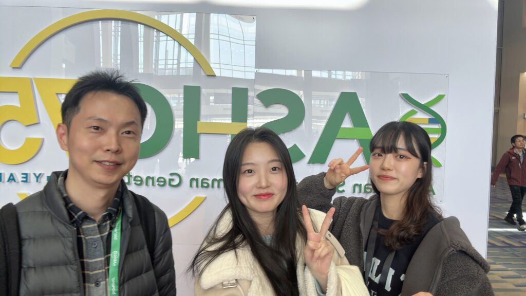 At the ASHG 2023 annual meeting Post author:kimlab Post published:11/06/2023 Post category:News Kwangwoo, Chae-Yeon, and Ayeong attended the ASHG 2023 annual meeting, which took place from November 1 to 5 in Washington, DC. Chae-Yeon and Ayeong presented posters about C4 variants and RA GWAS, respectively. You Might Also Like Jiwoo’s two papers in Scientific Reports 02/26/2019 Jiwoo presenting a poster in the KOGO conference 09/12/2017 Two research papers co-authored by Kwangwoo were recently published. 10/26/2017